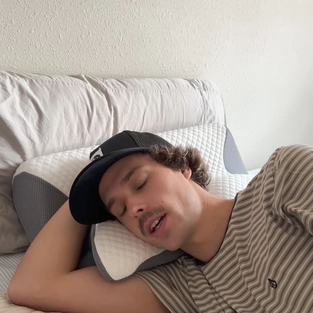 OrthoSleep™ stützt Ihren Nacken ergonomisch und beugt Verspannungen vor. Für erholsamen Schlaf, weniger Schmerzen und eine gesunde Körperhaltung – Nacht für Nacht.